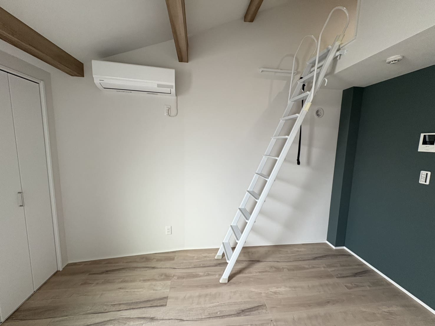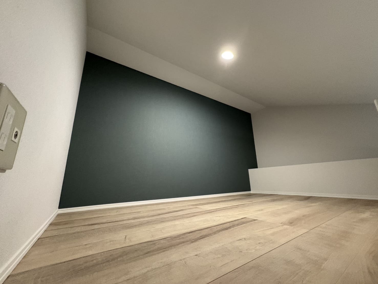 元からロフトにはアクセントクロスを使用したおしゃれなお部屋で黄色のあたたかみのあるお部屋でしたが、リフォーム後は深みのある落ち着いたグリーンでのアクセントクロスにしたことで、シックな印象に変わりました。