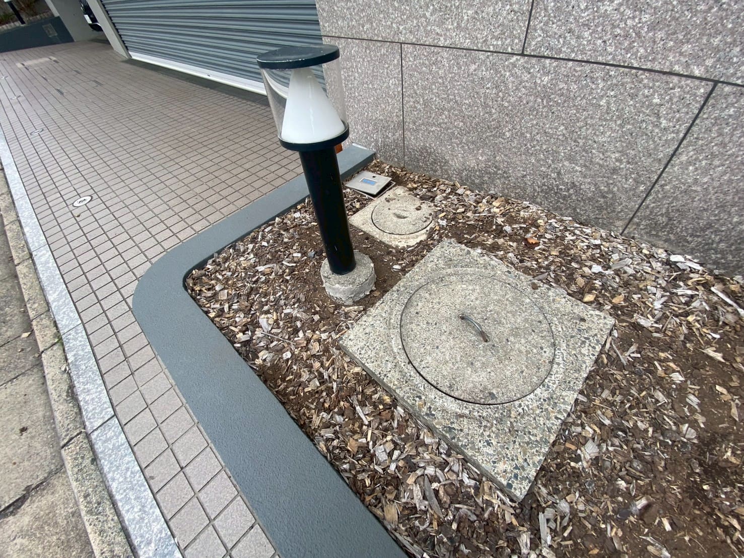 都内のオフィスビルの外構とあってシンプルですっきりしたライトが付いていました。