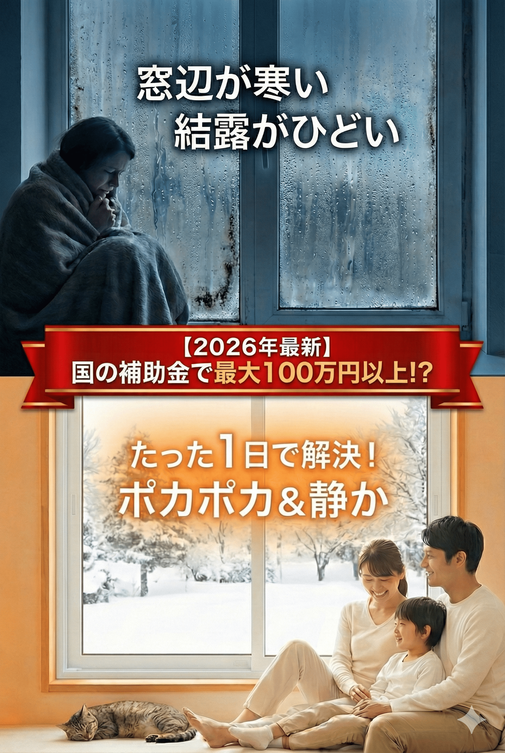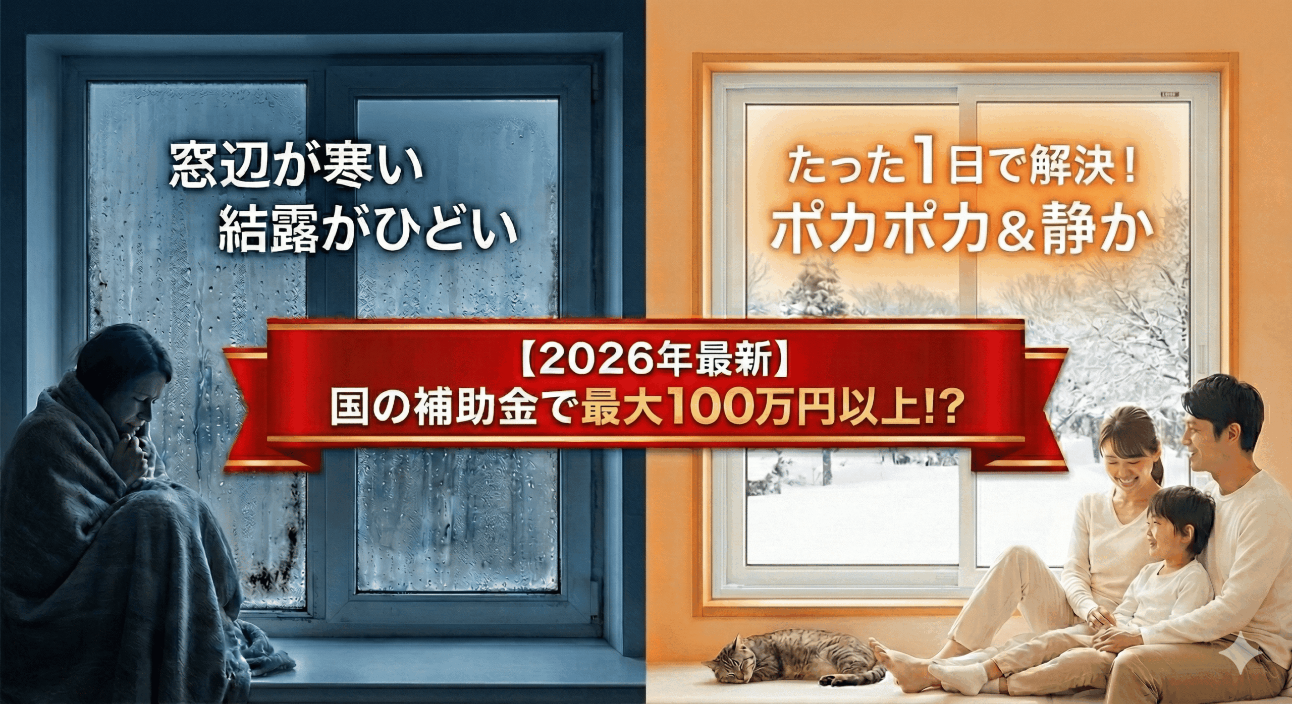 結論から申し上げますと、2026年は国の大型補助金「先進的窓リノベ2026事業」「みらいエコ住宅2026事業」を活用することで、LIXILの内窓「インプラス」が実質半額相当で設置できるビッグチャンスです!