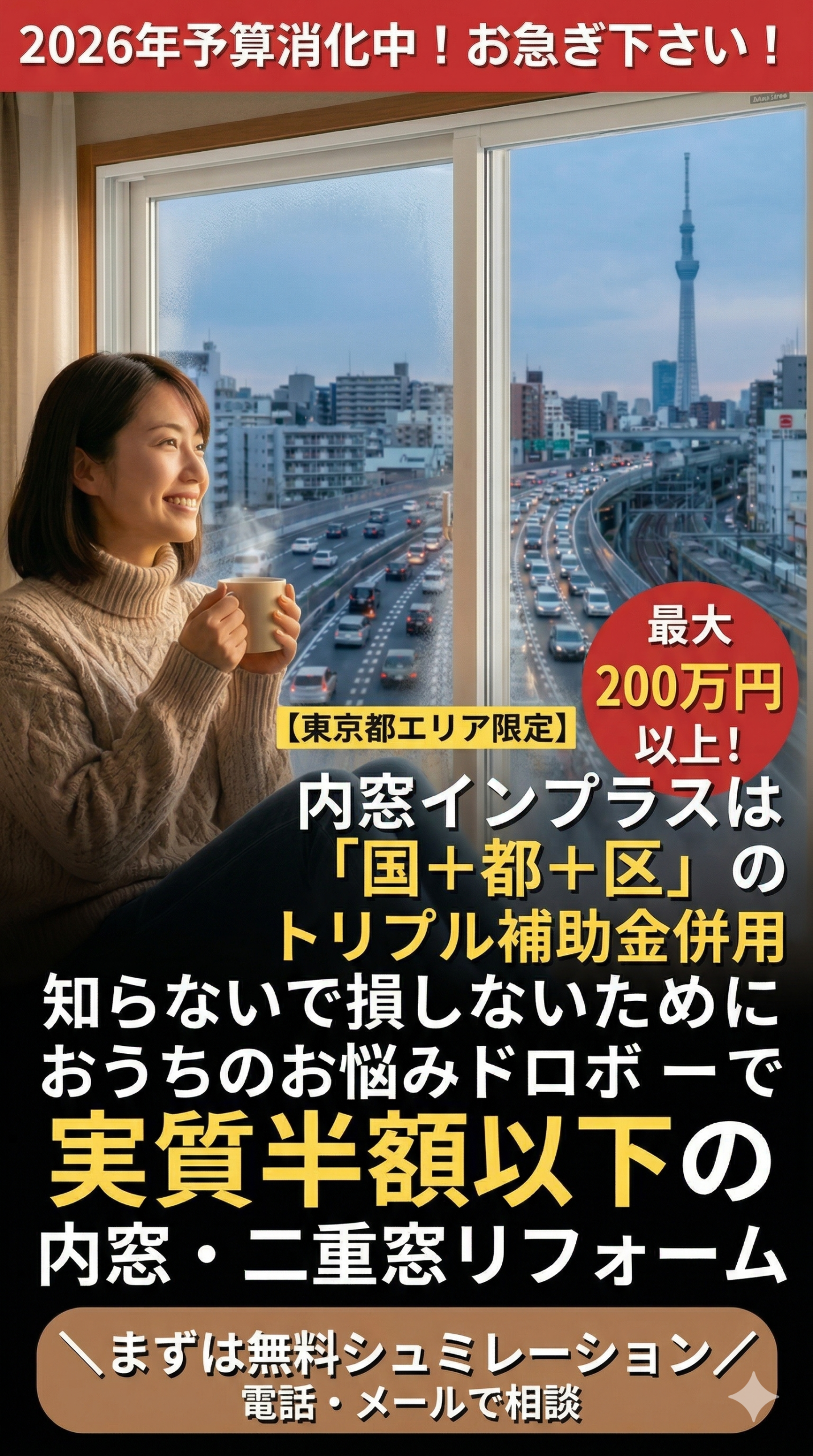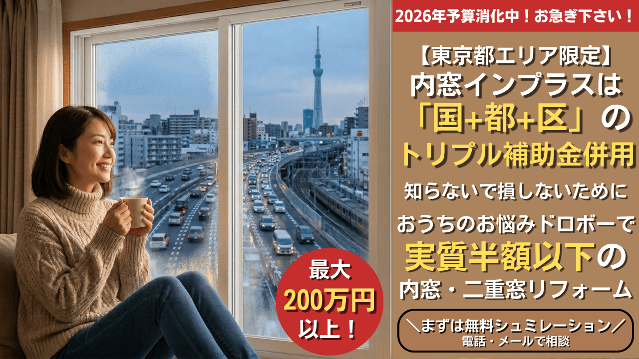 これらの制度を上手く組み合わせることで、他の都道府県に住んでいる方よりも何倍もお得に内窓・二重窓工事を行うことが出来る。それが今年の東京都なんです!