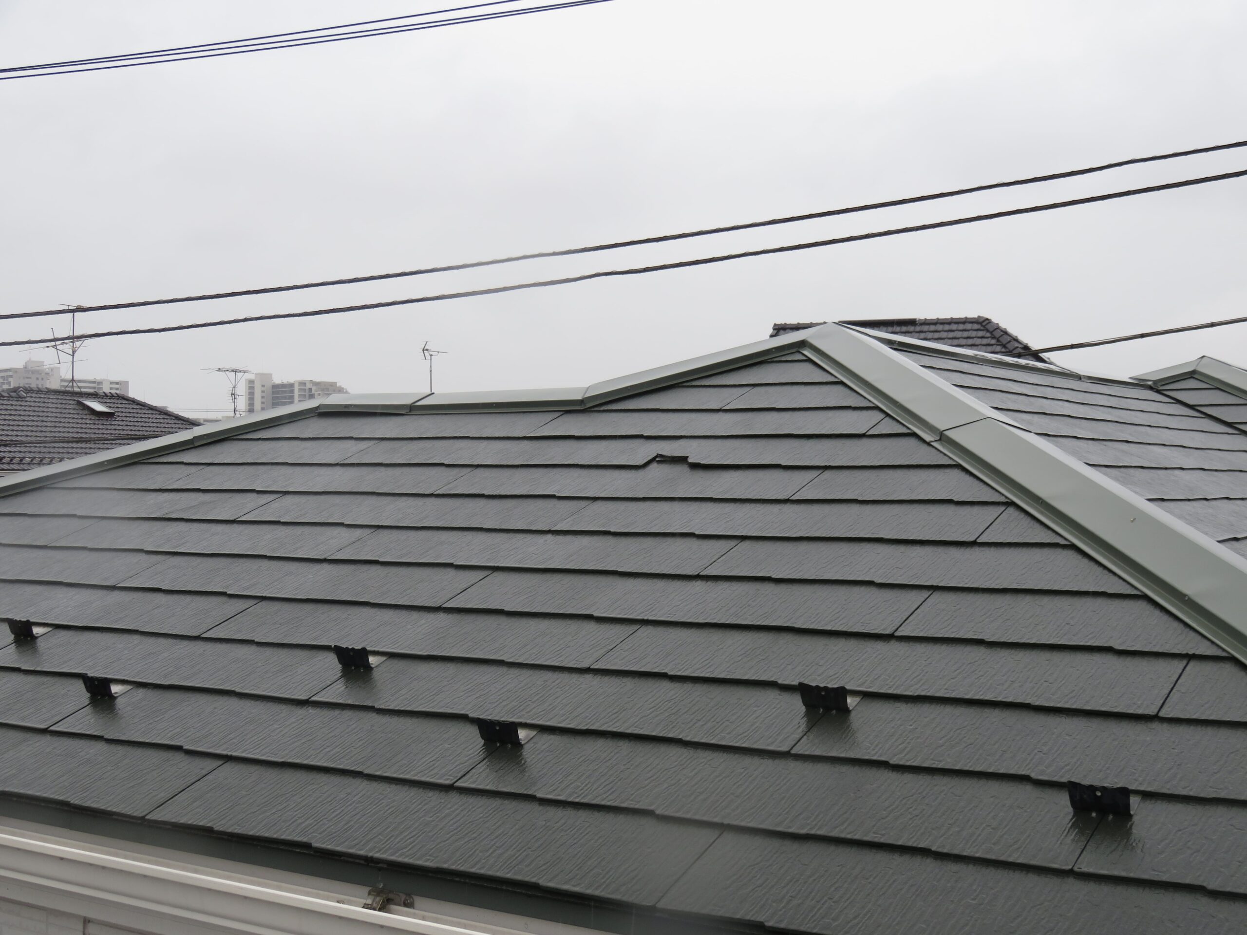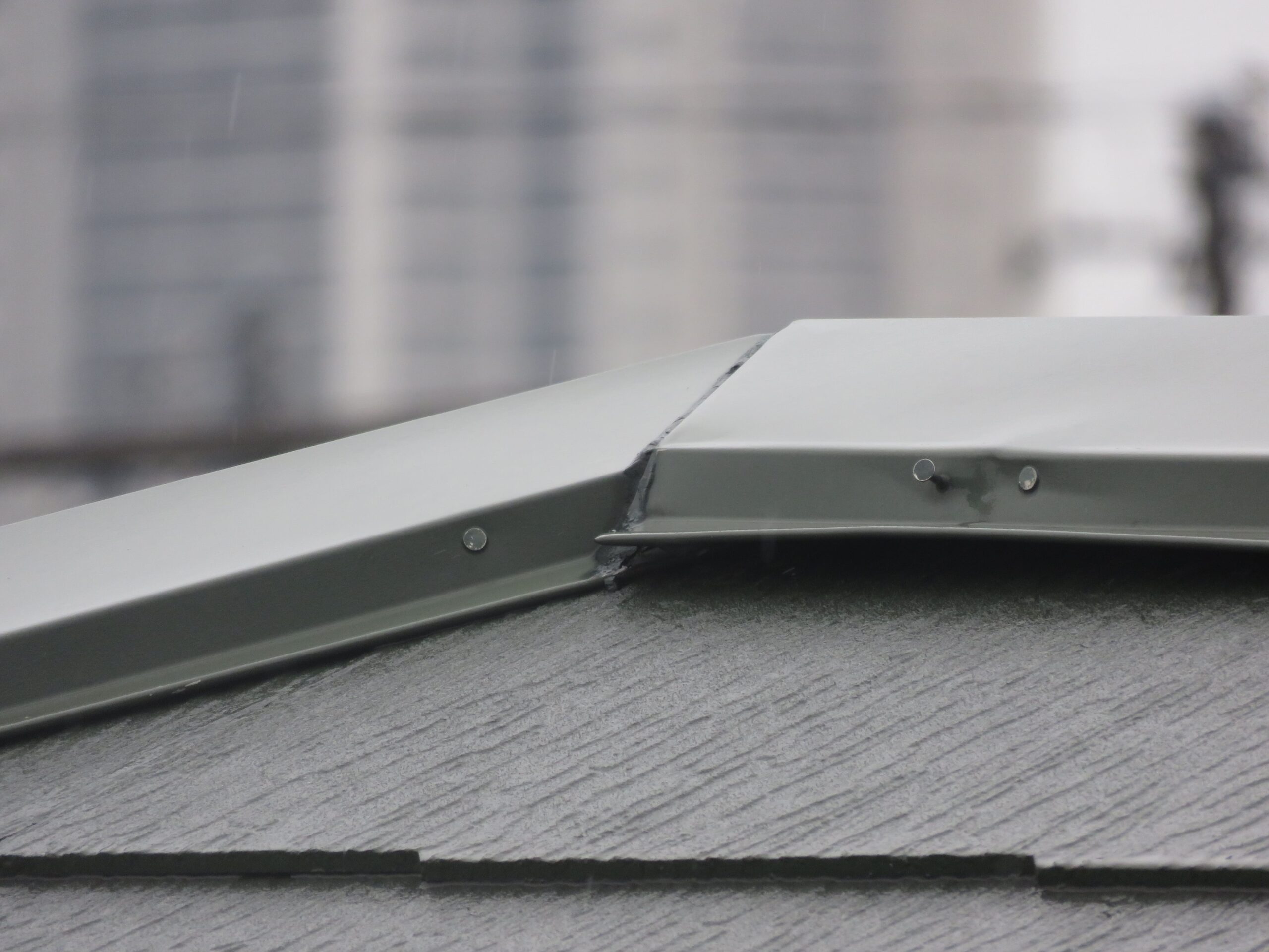 屋根の訪問業者が来て棟板金の破損を指摘された。確かに屋根には棟板金の隙間があるのが確認できた。