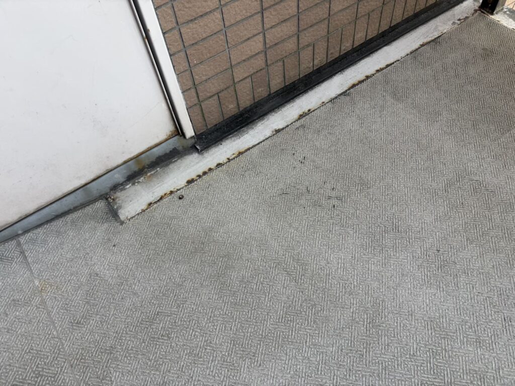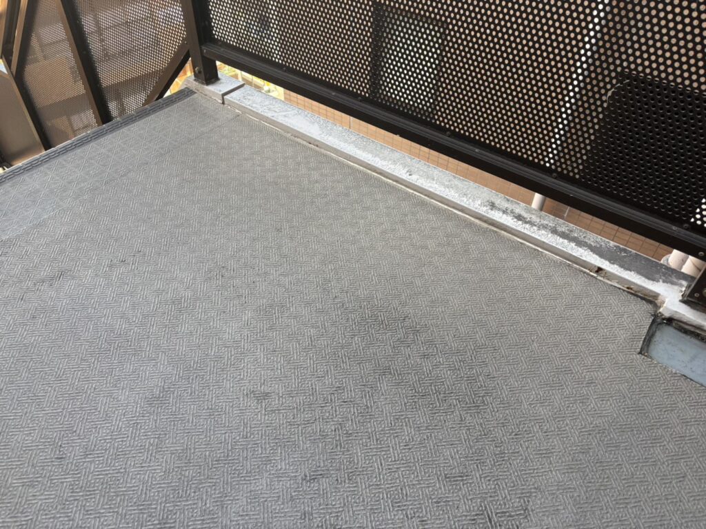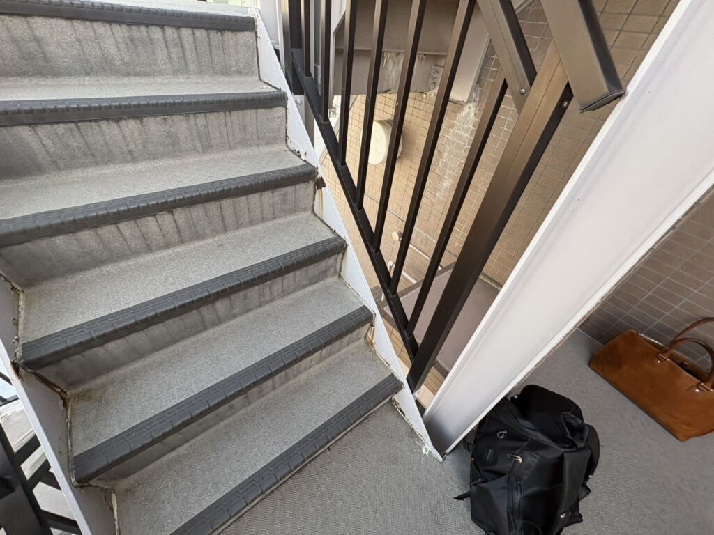 今回は足場を掛けずに届く範囲のみで階段鉄部の塗装工事と、長尺シートの交換工事をご提案予定です。